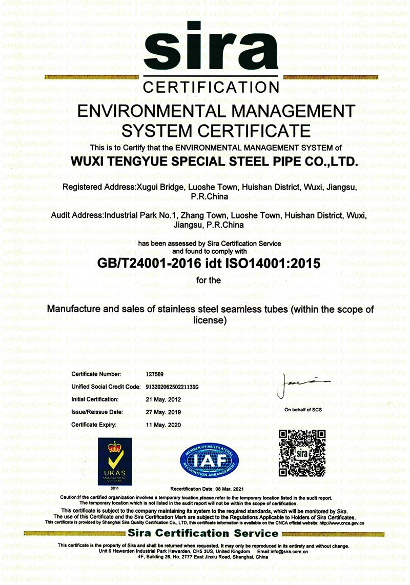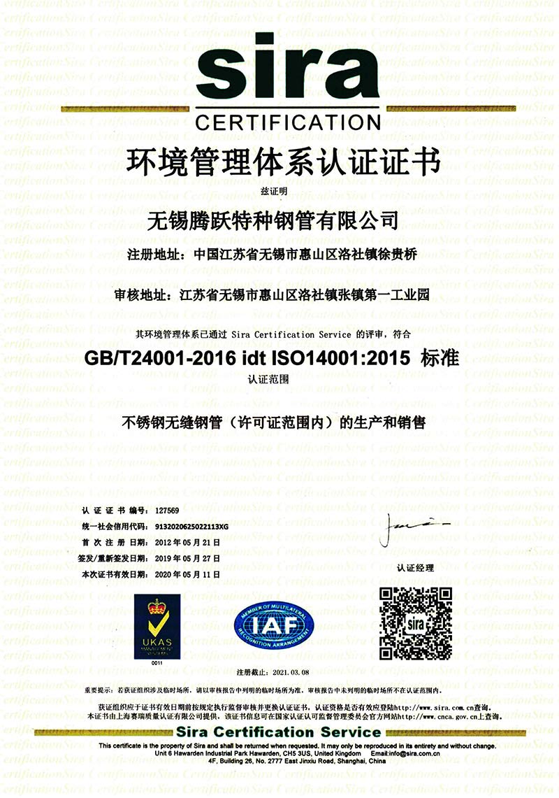 環境管理體系認證證書