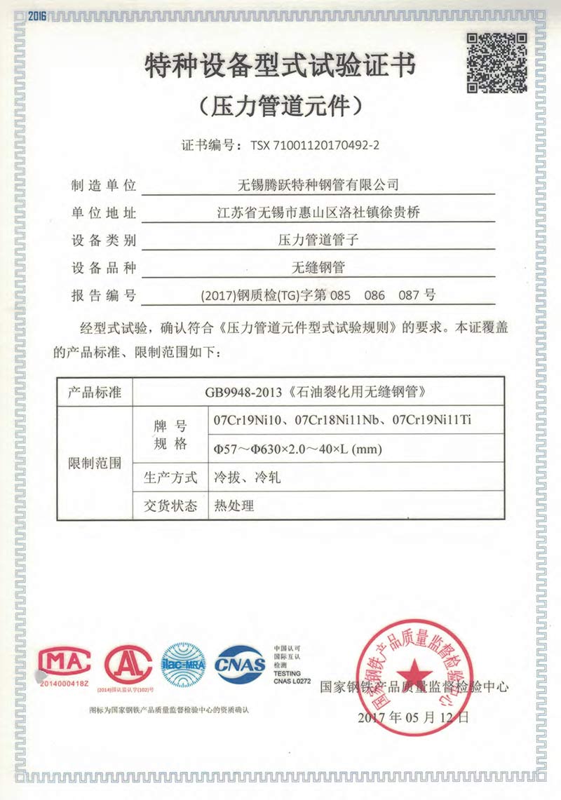 無錫騰躍特種鋼管有限公司創(chuàng)建于1987年,地處江蘇省無錫市惠山區(qū)洛社鎮(zhèn)。公司占地面積18萬平方米,現(xiàn)有員工350人,是一家專業(yè)生產不銹鋼無縫管的企業(yè),年產能5萬噸。主要規(guī)格:外徑6~630mm、壁厚0.7~40mm。主要材質:奧氏體、奧氏體-鐵素體、鎳基合金等。 公司是中石化、中石油、中海油、核電的供應商網絡成員單位,是江蘇省AAA級信用單位。公司先后通過ISO9001質量管理體...