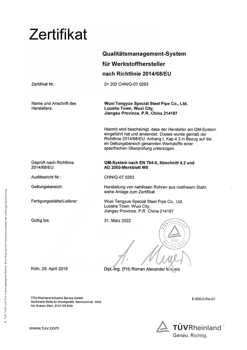 無錫騰躍特種鋼管有限公司創建于1987年,地處江蘇省無錫市惠山區洛社鎮。公司占地面積18萬平方米,現有員工350人,是一家專業生產不銹鋼無縫管的企業,年產能5萬噸。主要規格:外徑6~630mm、壁厚0.7~40mm。主要材質:奧氏體、奧氏體-鐵素體、鎳基合金等。 公司是中石化、中石油、中海油、核電的供應商網絡成員單位,是江蘇省AAA級信用單位。公司先后通過ISO9001質量管理體...